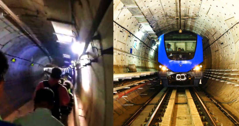 ചെന്നൈ : തുരങ്കപാതയ്ക്കുള്ളിൽ കുടുങ്ങി ചെന്നൈ മെട്രോ ട്രെയിൻ. ചൊവ്വാഴ്ച അതിരാവിലെയാണ് സംഭവം നടന്നത്. തുരങ്കത്തിനുള്ളിൽ ട്രെയിൻ നിന്നു പോയതിനെ തുടർന്ന് ട്രെയിനിലെ വൈദ്യുതി ബന്ധവും നിലയ്ക്കുകയായിരുന്നു. തുടർന്ന് യാത്രക്കാർ തുരങ്കത്തിനുള്ളിലൂടെ നടന്ന് പുറത്തെത്തുകയായിരുന്നു.